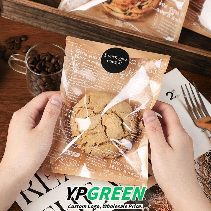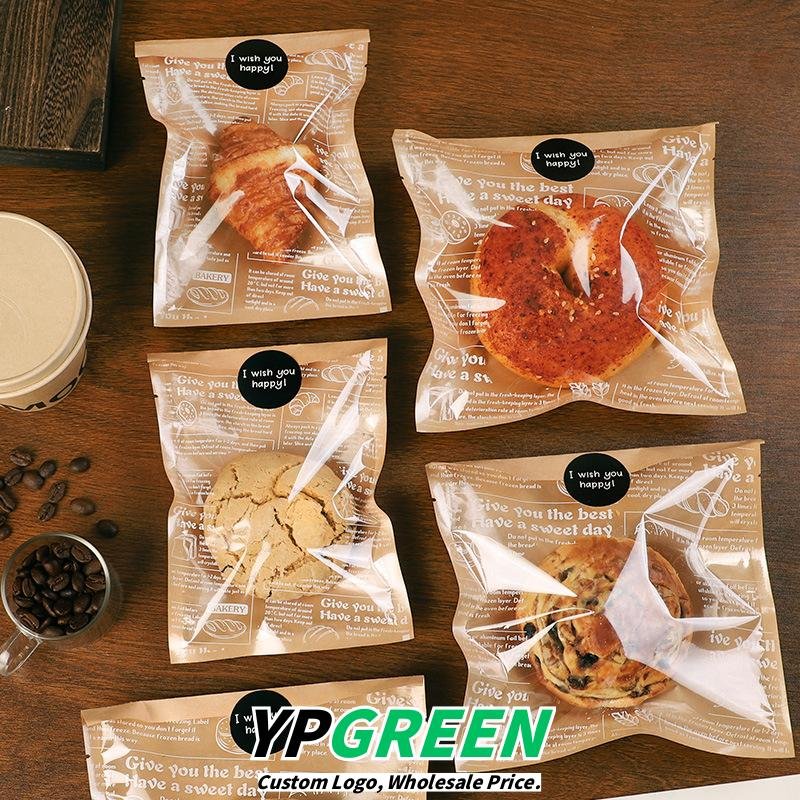 These food-grade transparent film kraft bags are made for sandwiches, cookies, bagels, pineapple buns, and bakery takeout.