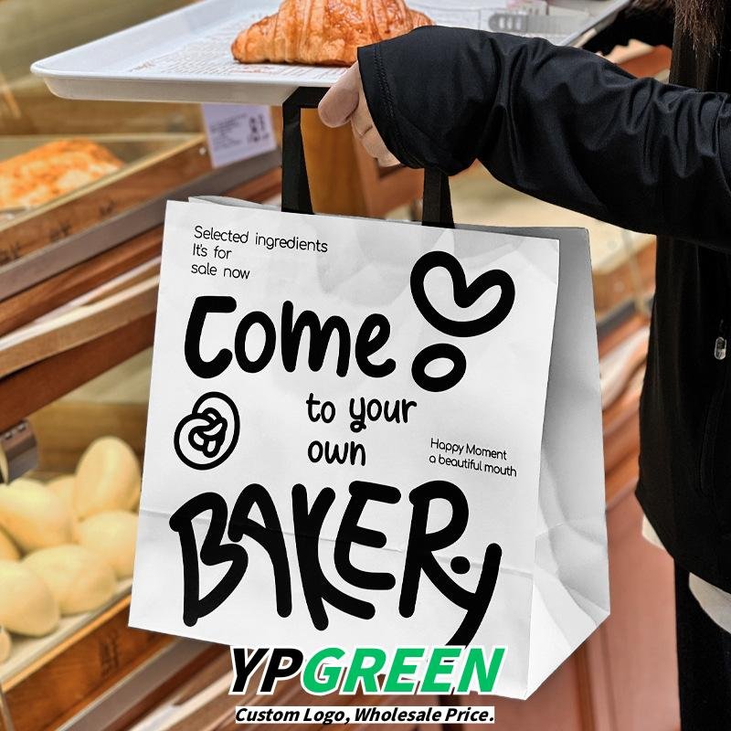 These IG-style kraft paper handheld bags are perfect for desserts, cakes, bread, and bakery takeout.