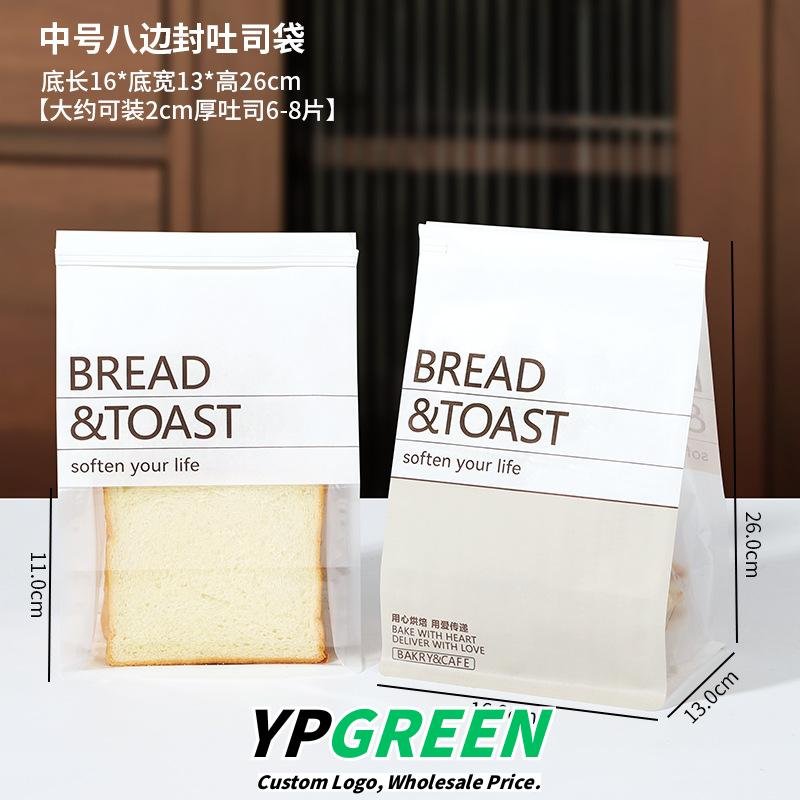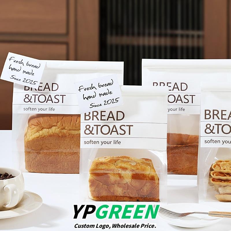 The bags are lightweight but strong, so they don't tear when packing full loaves or soft bread. You can see the golden crust clearly, which helps customers pick what they want fast at the counter. The self-standing base keeps them upright for neat display on shelves or counters. The bags fold flat for easy storage in your shop and open wide for quick filling during rush hours. They come in sizes that fit standard toast packs without bunching up or wasting space.