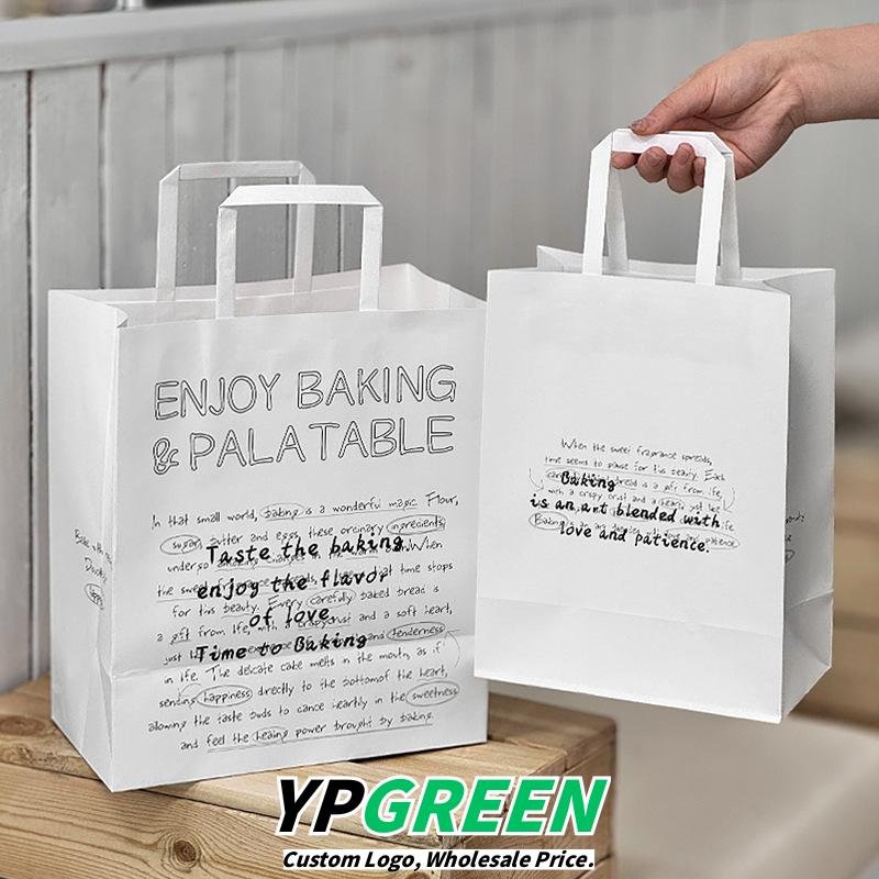The flat bottom keeps the bags standing up for neat display in your shop or during delivery. The paper is thick enough to hold warm bread or hot drinks without leaking. Customers like the clean white color because it looks fresh and modern for any bakery menu.